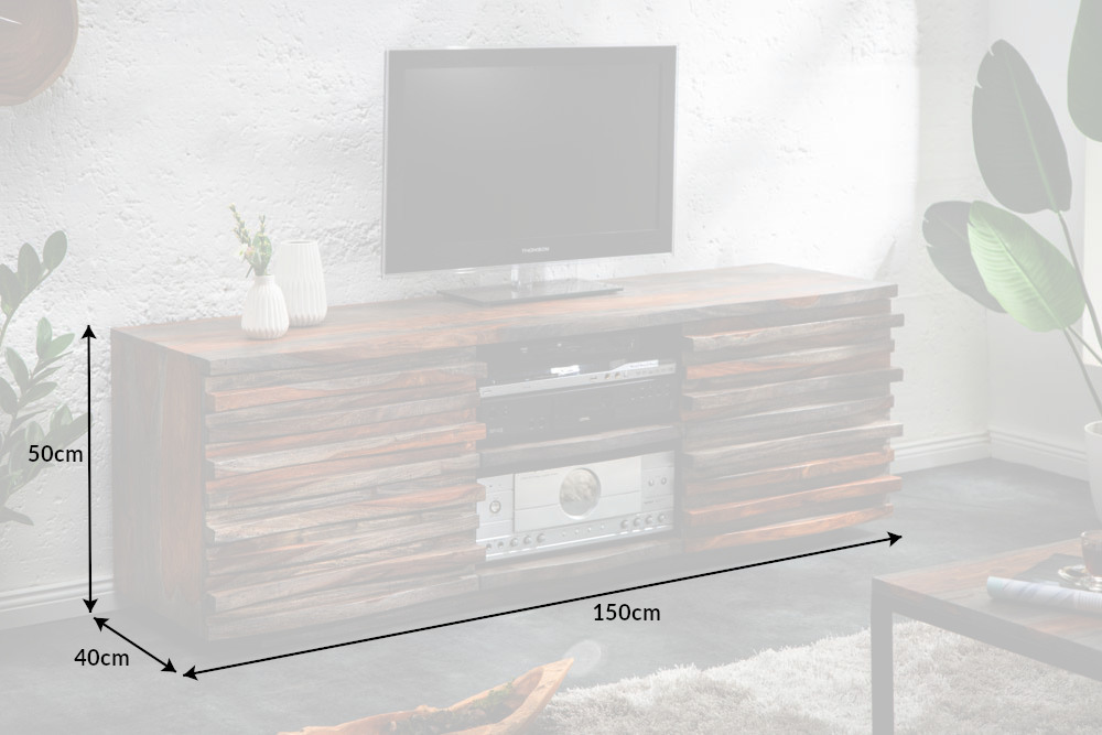Massief TV-lowboard RELIEF 150cm smoke finish Sheeshamhout met fraai front – 40282