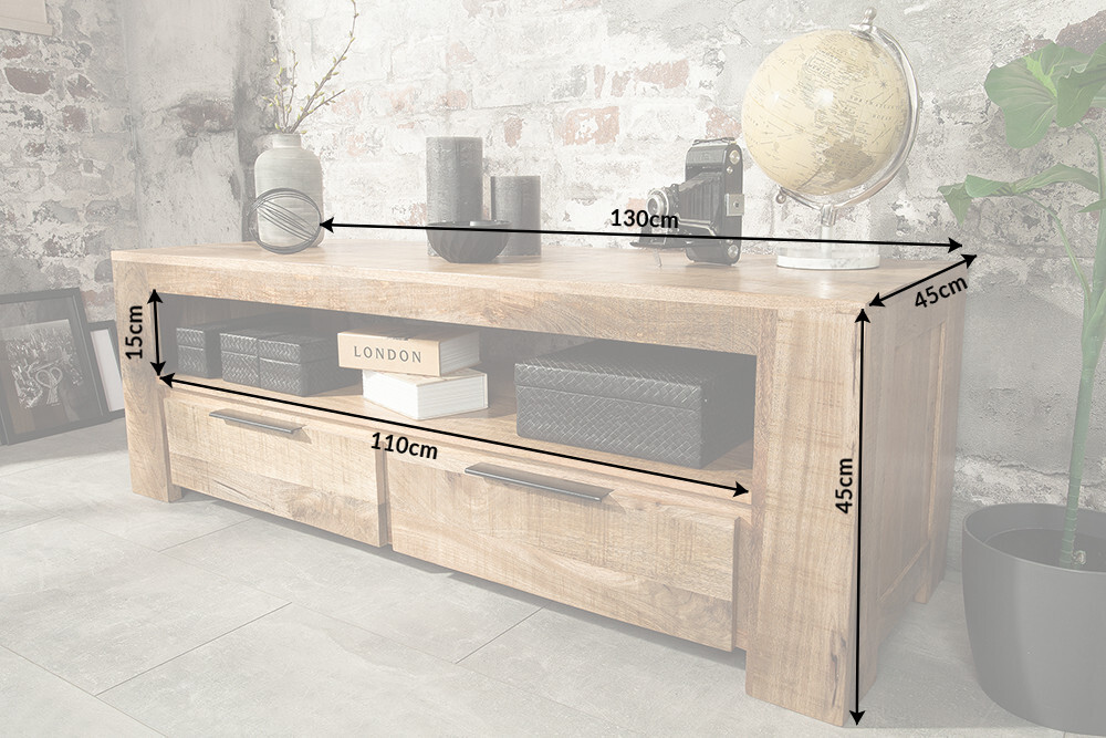 Massief tv-meubel IRON CRAFT 130cm mangohouten lowboard 2 lades – 38931