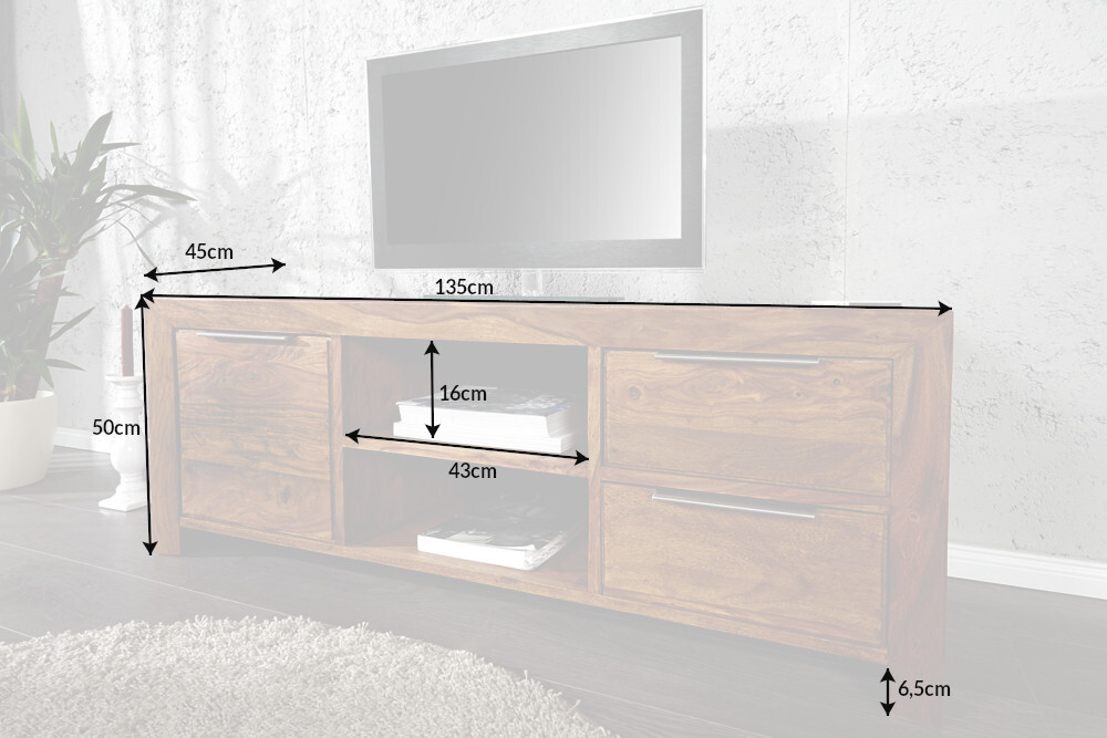 Massief tv-meubel PURE 135cm Sheesham steenafwerking lowboard palissanderhout – 22684