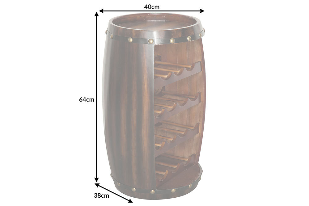 Massief wijnrek BODEGA 60cm koffiebruin grenen vat bartafel voor 14 flessen – 38963