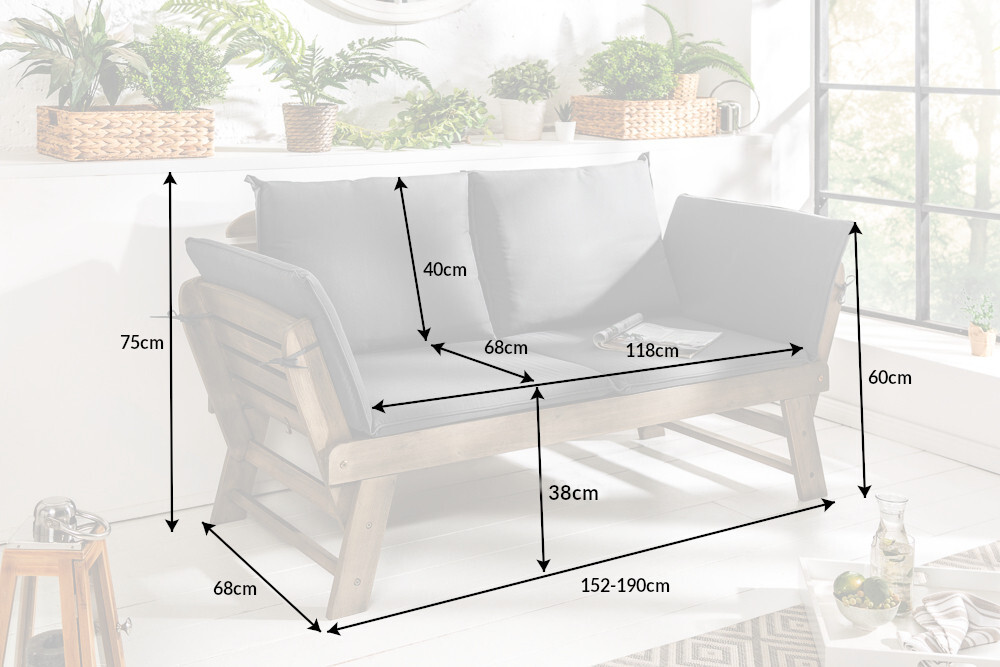 Massieve bank MODULAR 152cm grijs acacia inclusief kussen opklapbare tuinbank – 39837