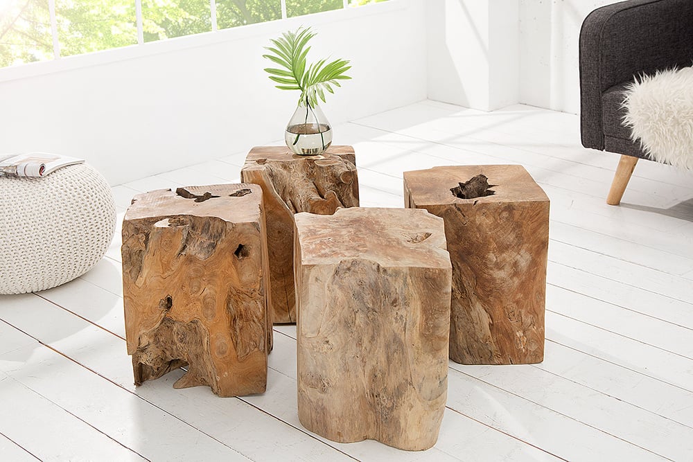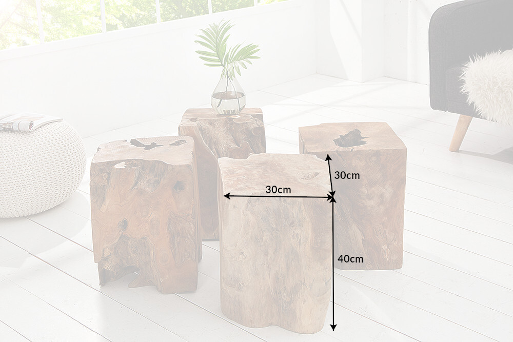 Massieve bijzettafel WOOD 30cm teakhouten kruk uit een stuk – 21292