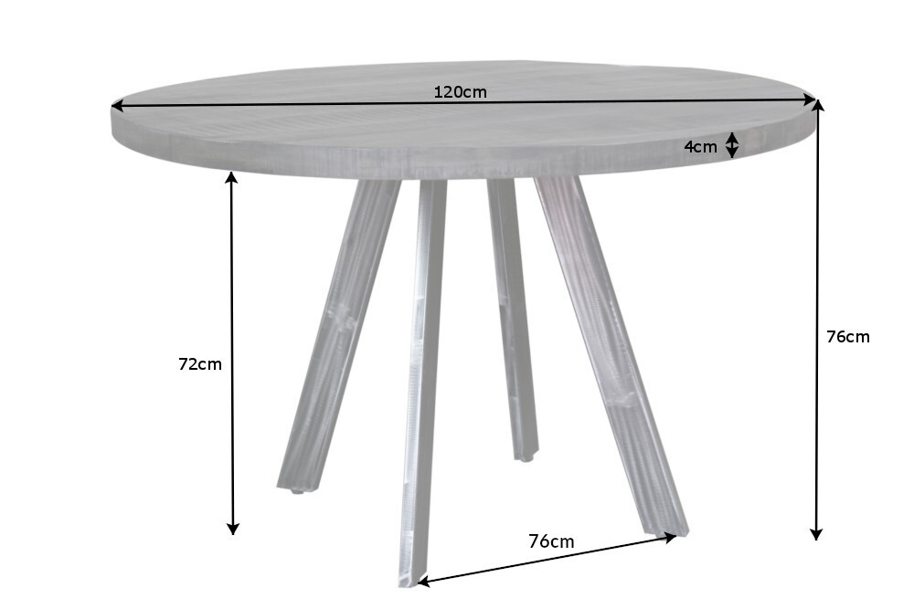 Massieve eettafel IRON CRAFT 120cm rond grijs mangohout gebogen poten – 39585