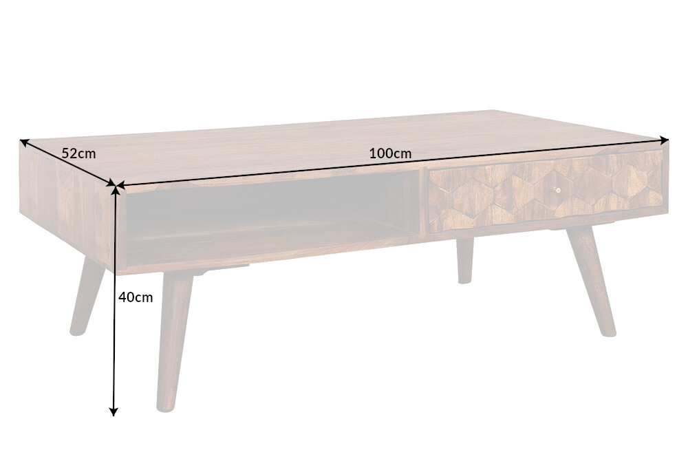Massieve salontafel MYSTIC LIVING 100cm Sheesham naturel 3D oppervlak massief hout – 39743