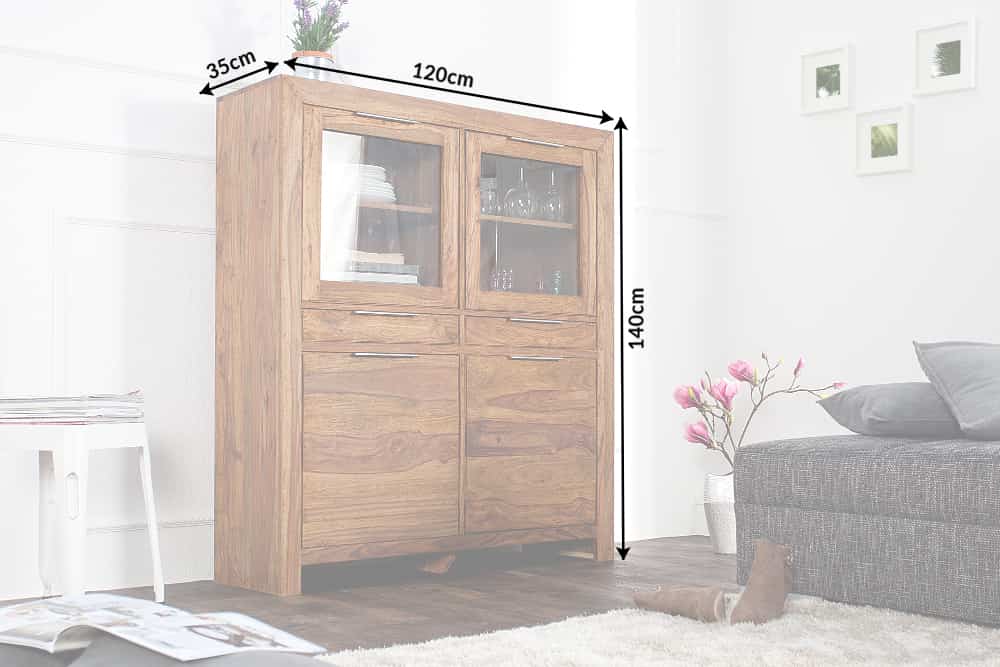 Massives Highboard PURE 140cm Sheesham steenafwerking Vitrine Palisander – 22685