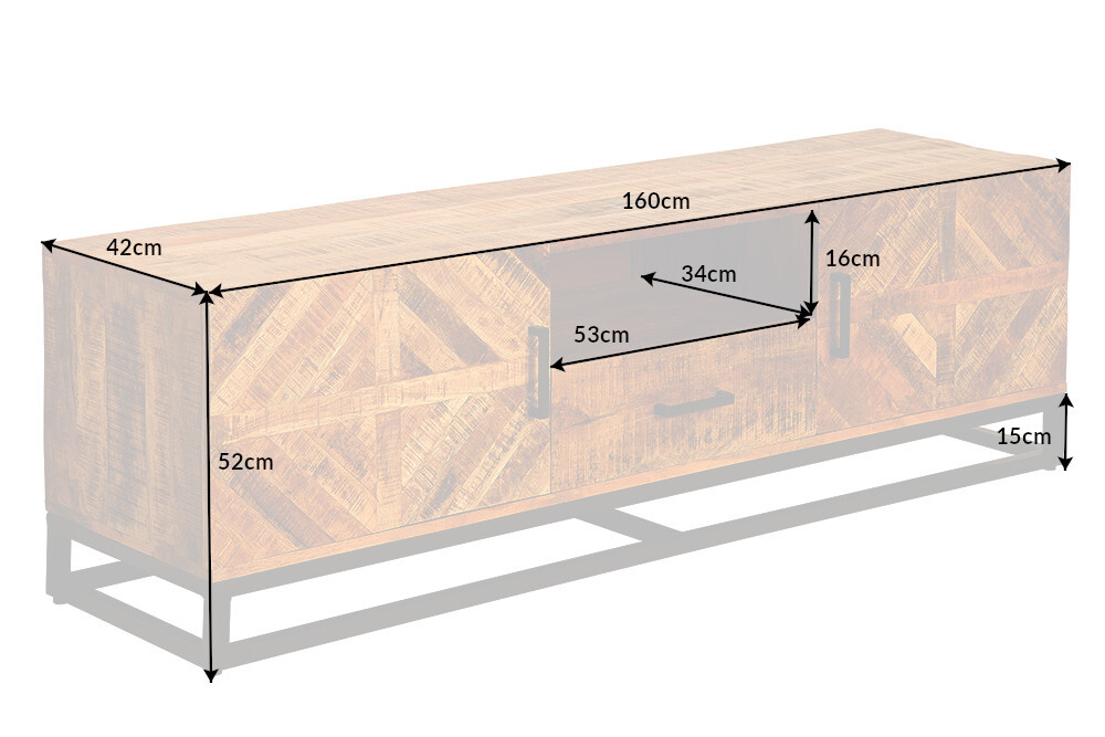 Massives TV-Board INFINITY HOME 160cm Mangoholz Industrieel Design – 39240