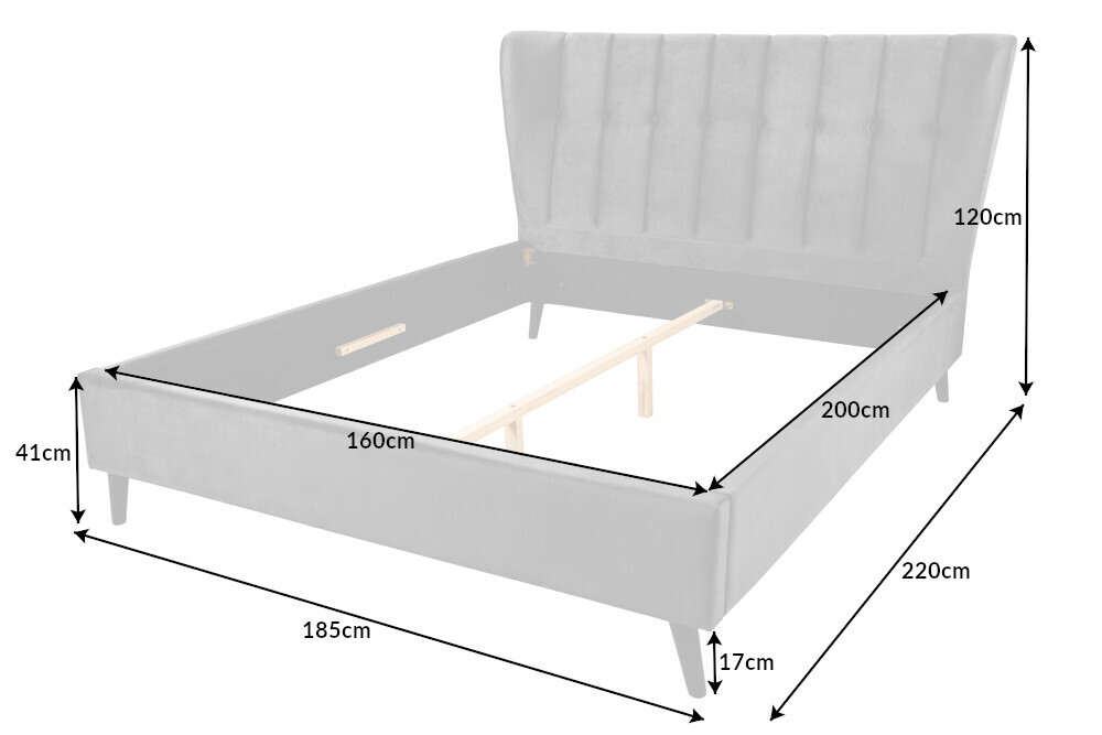 De donkergrijze fluwelen stoffen bekleding geeft het bed extra elegantie en is tegelijkertijd bijzonder onderhoudsvriendelijk. Of het nu voor uw slaapkamer of het logeergedeelte is: het gestoffeerde bed zorgt altijd voor een goede nachtrust. Het bed heeft een stevige middenbalk waardoor je twee lattenbodems naast elkaar kunt plaatsen. Onze interieurtip: Combineer het tweepersoonsbed met metalen meubelen in het zwart en creëer een moderne sfeer!