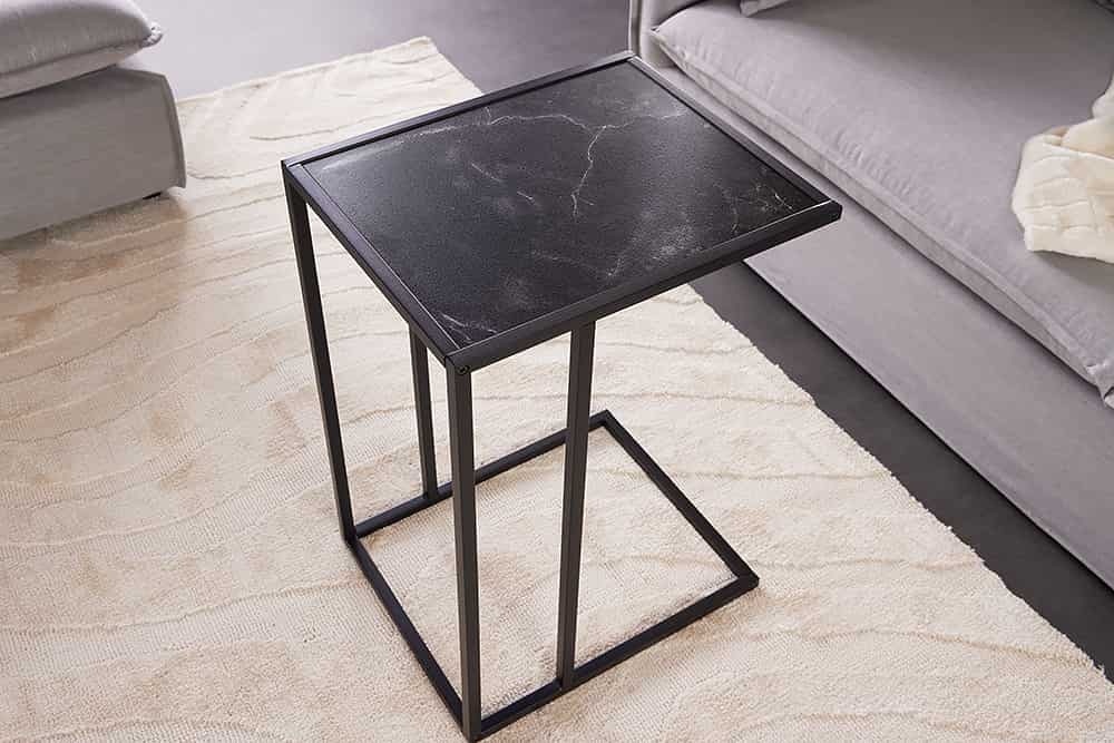 Moderne bijzettafel SLIM LINE 65cm antraciet zwart marmer design metalen laptoptafel – 44178