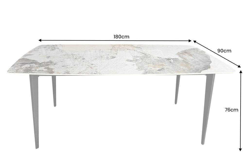 Moderne eettafel MILANO 180cm wit gemarmerd natuursteen keramiek zwart metalen poten - 44233