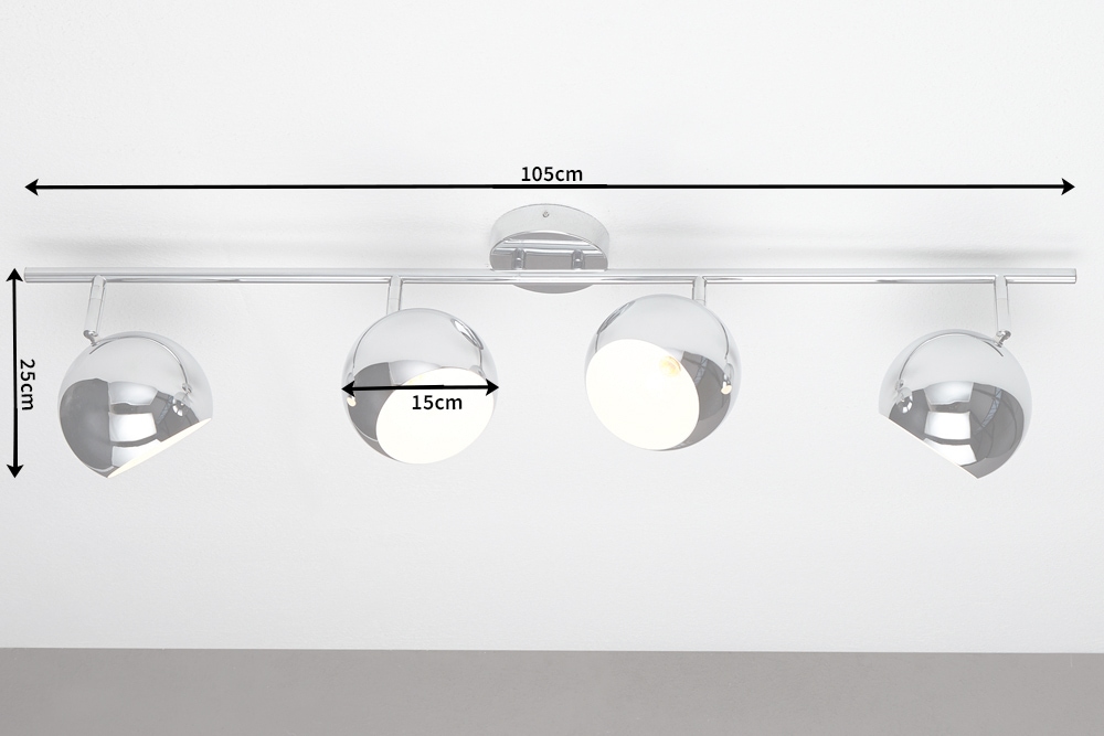 Met de elegante plafondlamp BUBBLE in chroom ontmoet modern design bewezen functionaliteit! De lichtbollen zijn eenvoudig te verstellen zoals jij dat wilt. Bepaal waar het licht wordt! Eenvoudig draaien en vergrendelen in de gewenste positie met behulp van de hoogwaardige scharnierende stangen. Dit betekent dat de verlichtingsrichting van de vier bollen vrij kan worden beïnvloed. Het maakt niet uit of de lichtbollen naar de zijkant of naar beneden schijnen. Dit zorgt voor optimale lichtomstandigheden in uw leefomgeving.