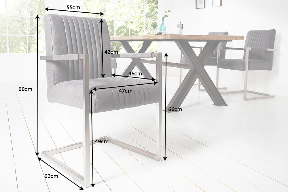 Moderne sledefauteuil BIG ASTON vintage grijs geborsteld roestvrij staal – 39085