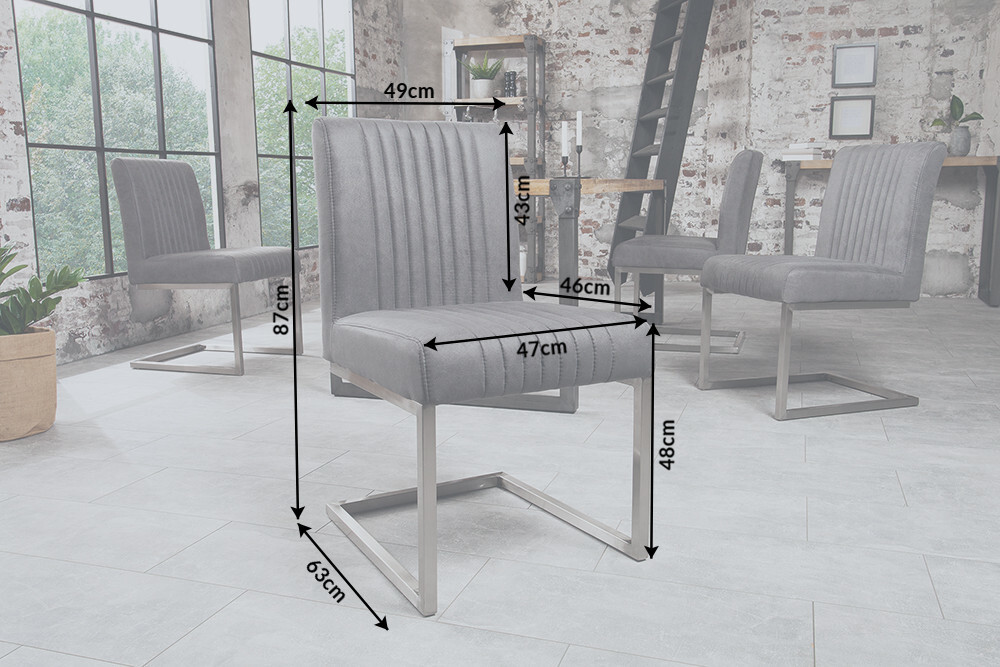 Moderne sledestoel BIG ASTON vintage grijs geborsteld roestvrij staal – 39853