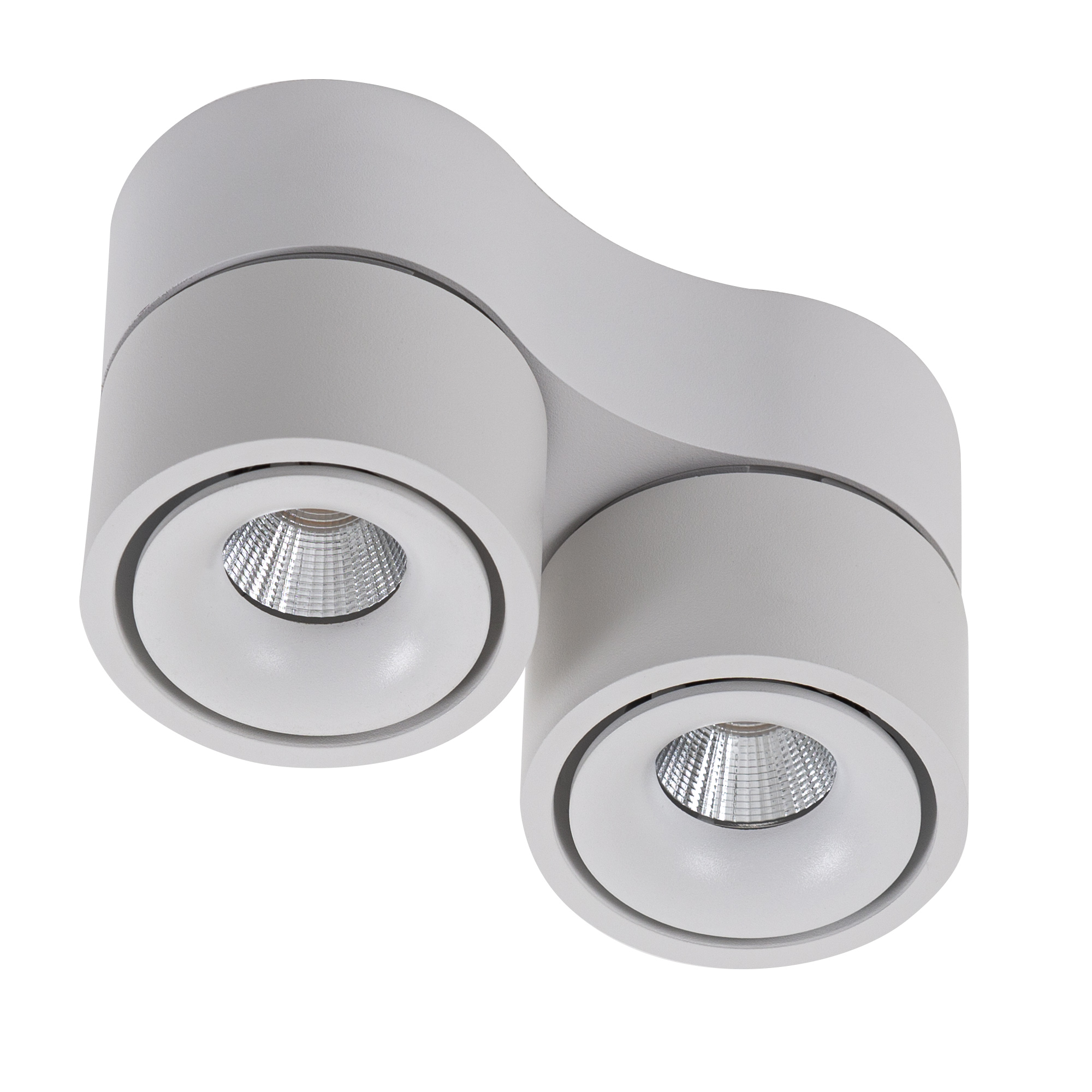 De Ole 2 wit is een ronde verstelbare plafondlamp / spot (90 graden draaibaar en kantelbaar) met een hoogte van 9 centimeter en een doorsnee van Ø7,5 centimeter. Deze fraaie design spot kan op de wand en aan plafond gemonteerd worden.De Ole heeft een ingebouwde LED (2x 9,4 Watt) warm wit kleurige LED lichtbron (3000 Kelvin) met een totale lichtopbrengst dimbaar tussen de 45 en 919 Lumen per spot. Mocht je de Ole 2 aansluiten op een dimmer wordt de kleur van het licht warmer naarmate je de lamp zachter dimt. Tot wel 1900 Kelvin (goudkleurig). De Ole spot kan aangesloten worden op een dimmer. Je hoeft de spot enkel aan te sluiten. In deze 'Ole'' serie bevindt zich ook een 1 lichts plafondlamp. Alle Ole opbouwspots zijn verkrijgbaar in de kleur wit en of zwart.