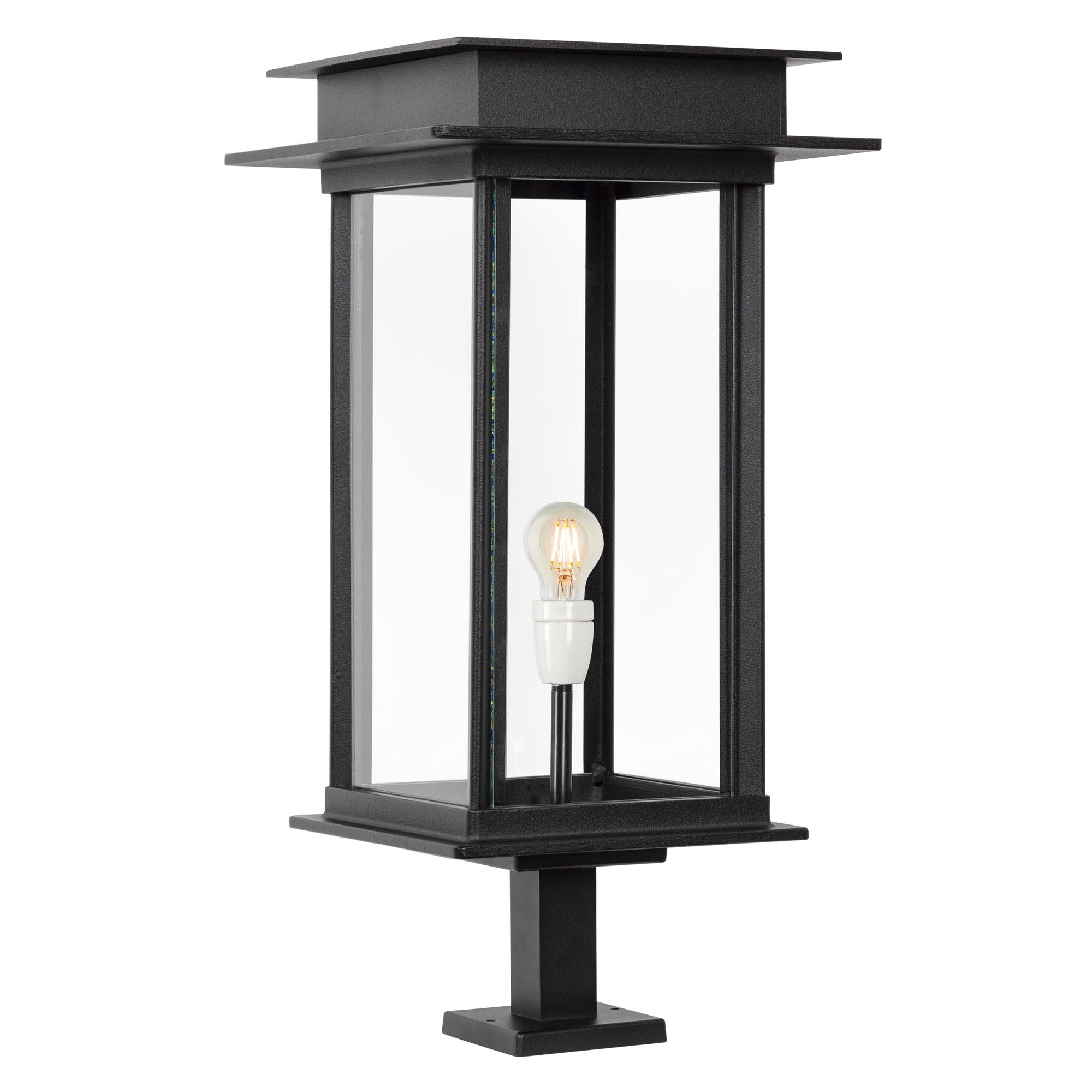 Stijlvolle en trendy vormgegeven sokkellamp met een strak design. De Praag XL sokkel buitenlamp heeft een E27 fitting. Je kunt dus diverse lichtbronnen gebruiken. Bijvoorbeeld een mooie kooldraadlamp of een energiezuinige spaarlamp. Uiteraard is de Praag ook LED geschikt! Wordt geleverd met echt glas.De Praag XL sokkel is ook zeer geschikt als verlichting op een poer of zuil. Mooie verlichting voor op een penant bij de inrit, naast een poort. Exclusieve handgemaakte buitenverlichting met een karakteristiek design van KS Verlichting. Onderscheidende stijlvolle tuin – en gevelverlichting. voor een luxueuze manier van verlichten.