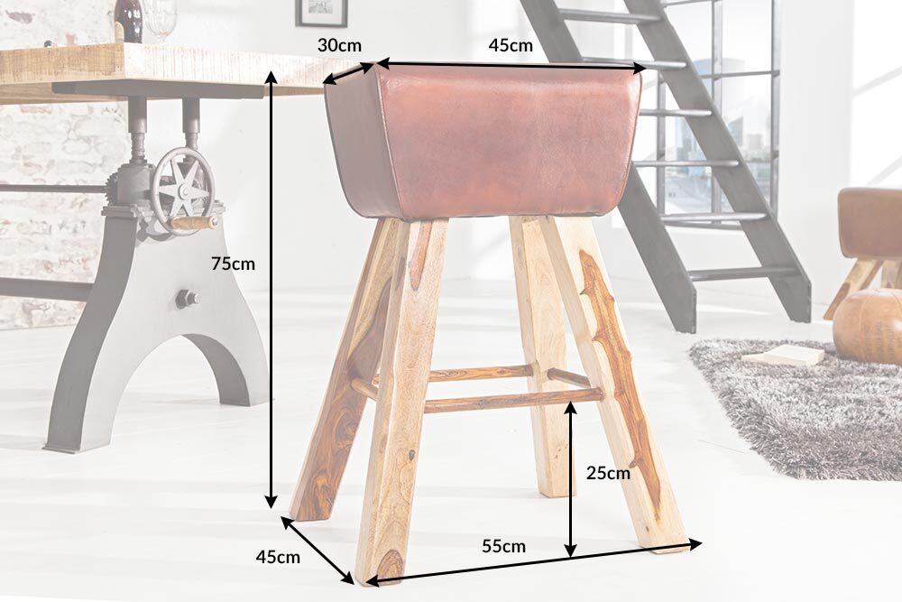 Retro barkruk TURNBOCK 75cm met echt leren bekleding mangohouten barstoel – 36815