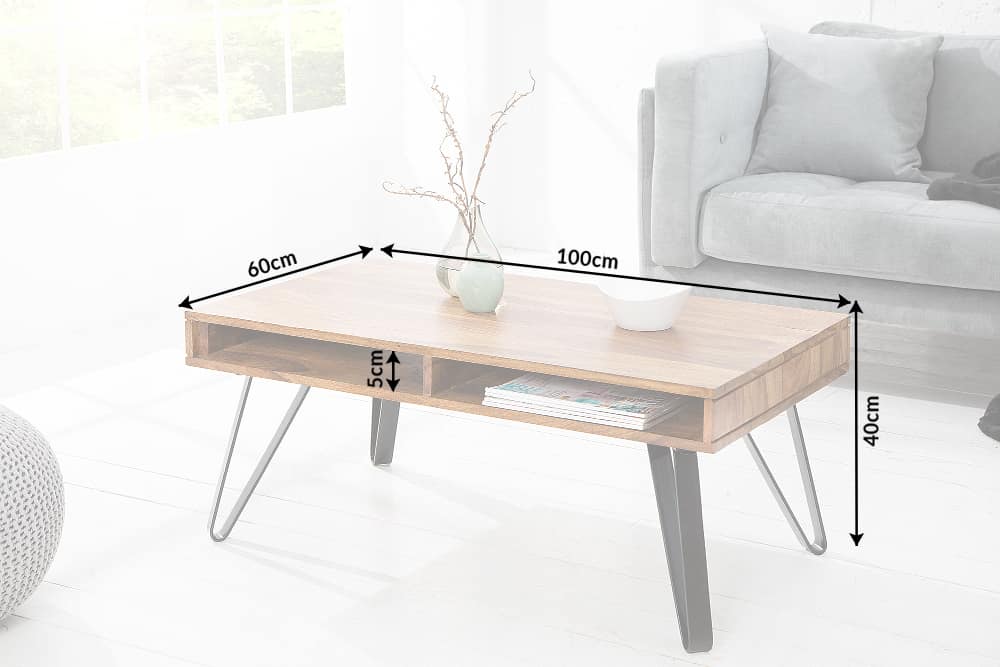 De tv-krant, de middagkoffie of het spelbord: de salontafel biedt ruimte voor al uw keukengerei en zorgt tegelijkertijd voor een harmonieus inrichtingsconcept in uw woonkamer. Met de stijlvolle retro salontafel plaats je nu eenvoudig een echte designklassieker in jouw sfeer. Hoogwaardig massief hout ontmoet tijdloos design en brengt natuurlijke charme en trendy retro chic in uw woonkamer.