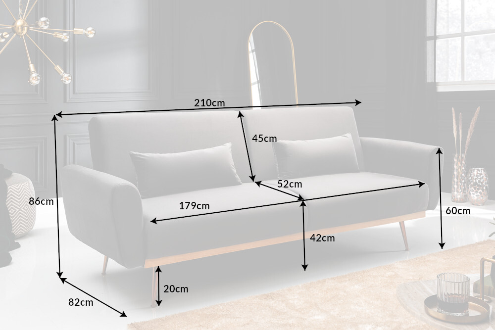 Deze bank heeft werkelijk alles! Niet alleen maakt de look meteen indruk en trekt hij ieders aandacht, ook functioneel heeft hij veel te bieden. De rugleuning van de 3-zitsbank kan eenvoudig naar achteren worden geklapt en de bank kan worden omgetoverd tot een comfortabel logeerbed. Niets staat een spontaan bezoek in de weg! De bijpassende kussens zijn uiteraard bij de levering inbegrepen en verhogen het lig- en zitcomfort nog verder.