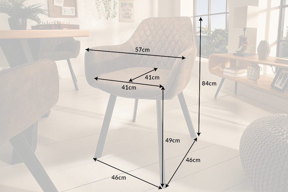 Deze tijdloze stoel in trendy retrostijl past werkelijk in elke sfeer. De geslaagde combinatie van hoogwaardige microvezelbekleding en zwart metalen poten in het typische, uitlopende design kan op vele manieren gecombineerd worden en straalt elegantie en stijlvol zelfvertrouwen uit. Uiteraard is de zitschaal comfortabel gevoerd en voorzien van twee armleuningen die voor extra zitcomfort zorgen.