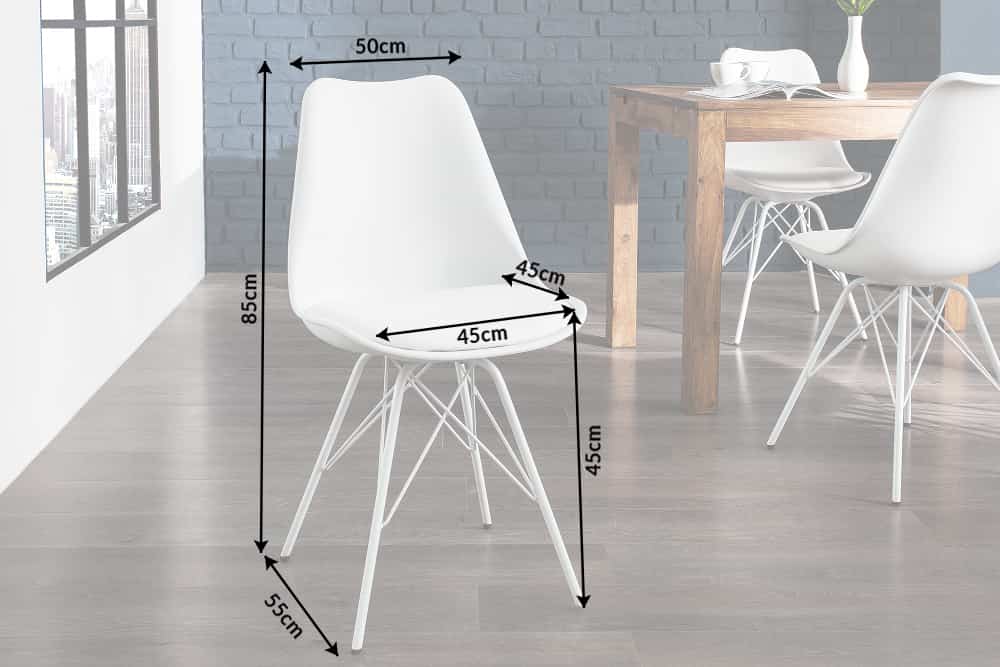 Een ander visueel hoogtepunt zijn de stevige stoelpoten van hoogwaardig metaal in de kleur wit, die perfect in de zitschaal passen en de Scandinavische uitstraling compleet maken. Dankzij het stijlvolle ontwerp past de retro design stoel zich perfect aan elke omgeving aan en kan hij voor veel ruimtes in huis een optie zijn. U kunt hem overal gebruiken waar comfortabel zitten nodig is.