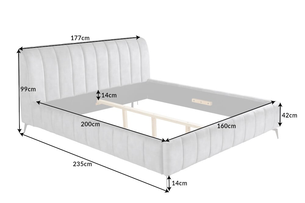 De gestructureerde fluwelen bekleding glinstert licht en geeft het bed extra elegantie. Je wilt ’s ochtends niet opstaan! Het bed heeft een stevige middenbalk waardoor je twee lattenbodems naast elkaar kunt plaatsen. Bij de keuze voor decoratie en bijpassende meubelstukken kun je je helemaal uitleven: kleurrijke accenten, een bijpassend vloerkleed en opvallende accessoires passen hier perfect bij!