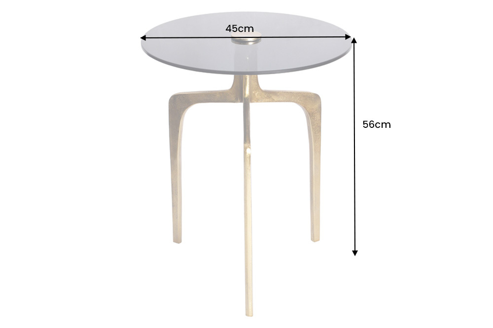 Onze ronde bijzettafel ABSTRACT overtuigt op het eerste gezicht door zijn unieke design. Het zwart glazen tafelblad rust op drie slanke, delicate poten in een warme goudtint. In moderne stijl geeft het lakwerk met zijn lichte oneffenheden en gestructureerd oppervlak een bijzonder tintje. Deze bijzettafel is een klein, uniek stuk dat veelzijdig inzetbaar is en een gouden accent aan je interieur toevoegt.