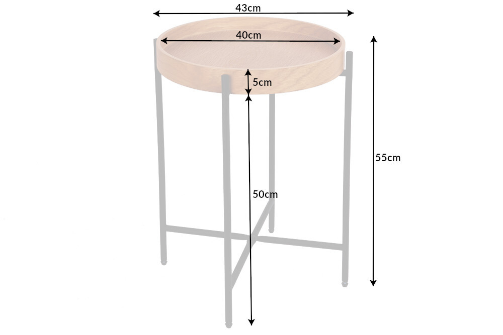 Ronde bijzettafel ELEMENTS 40 cm natuurlijk eiken dienblad metaal zwart nachtkastje – 39712