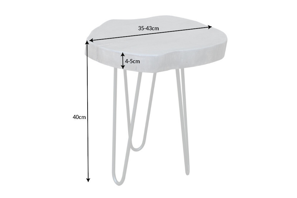 Ronde bijzettafel GOA 45cm grijs massief acaciahout boomschijf kruk haarspeldpoten metaal – 39597