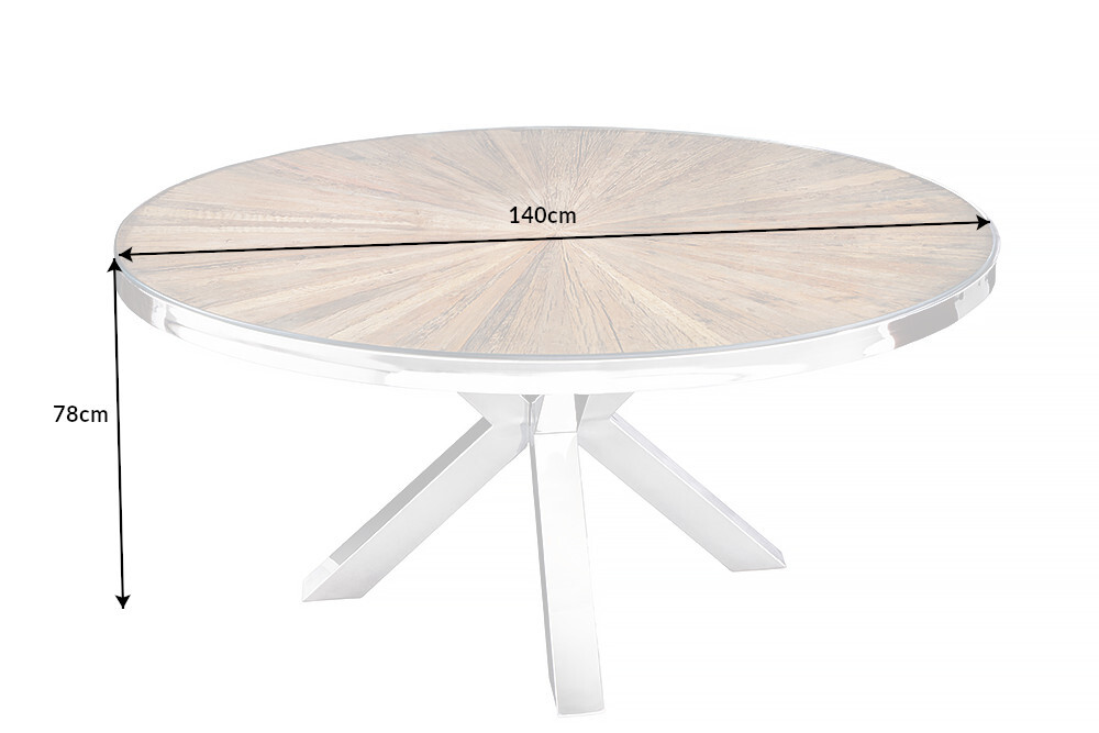Natuurlijke elegantie voor uw eetkameroase: de ronde eettafel BARRACUDA van teakhout en roestvrijstalen frame