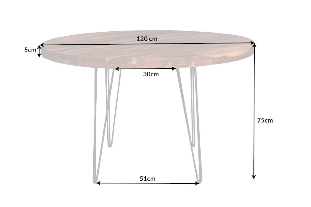 Ronde eettafel MAKASSAR 120cm naturel zwart Sheesham massief hout Haarspeldpoten – 40780