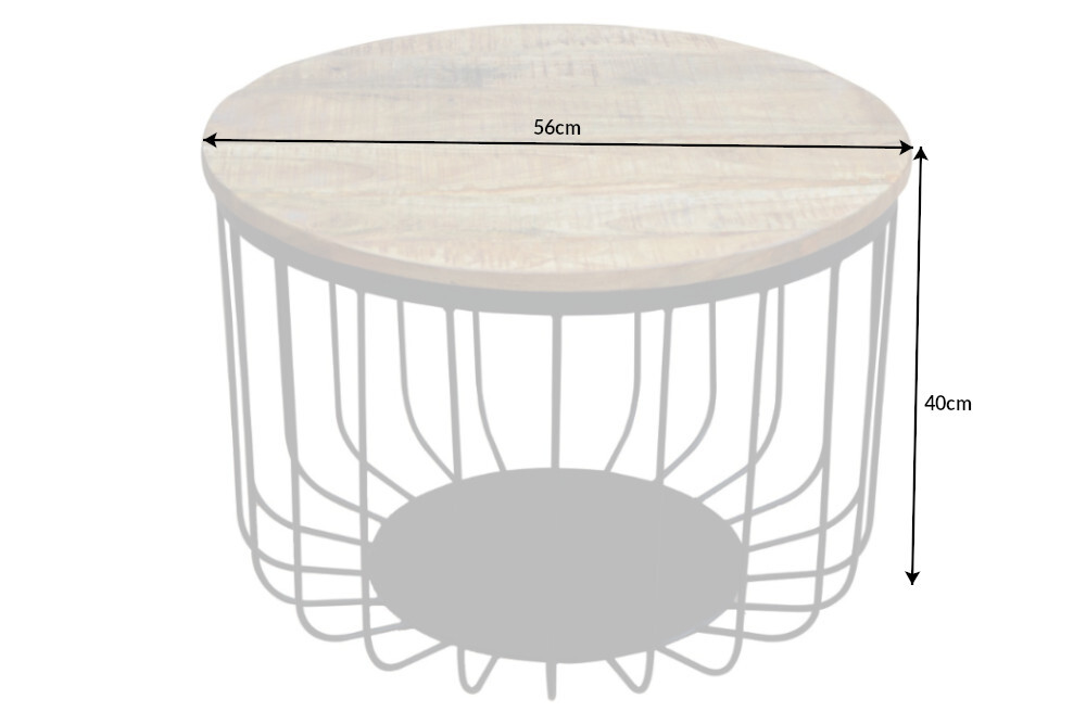 Ronde salontafel FACTORY LOFT 60cm natuurlijk mangohout zwart metalen frame handgemaakt massief – 39655