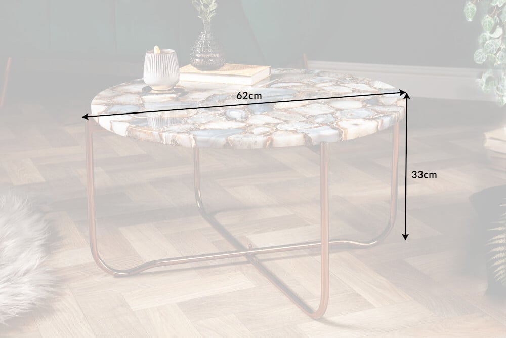 Ronde salontafel NOBLE 65cm edelsteen agaat afneembaar tafelblad gouden metalen frame – 40364