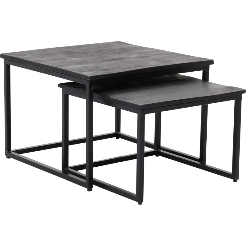 Wil jij een vierkante salontafel met een industrieel design? Met deze set krijg je zelfs 2 salontafels in het stoere ontwerp dat je zoekt. Beide Coco tafels hebben een tafelblad van mangohout en een solide, metalen frame van vierkante buizen. Het mangohout oogt ambachtelijk en is strak afgewerkt. Dit geeft de set een hele stijlvolle en tijdloze uitstraling en daardoor passen ze ook goed in andere moderne interieurstijlen. Salontafelset Coco is te gebruiken op meerdere manieren. De set bestaat uit 1 salontafel van 60x60x42 cm en 1 salontafel van 50x50x35 cm (bxhxd). De kleinere variant schuif je gemakkelijk onder het grotere exemplaar en dat is ideaal wanneer je meer loopruimte wenst in je zithoek. Op het moment dat je een verjaardag viert en plek nodig hebt voor al het lekkers op tafel, dan gebruik je de set als bijzettafeltjes in je woonkamer. Is er geknoeid? Geen probleem. De tafels maak je eenvoudig schoon met een vochtige doek. Lekker simpel. Vallen de Coco salontafels bij jou in