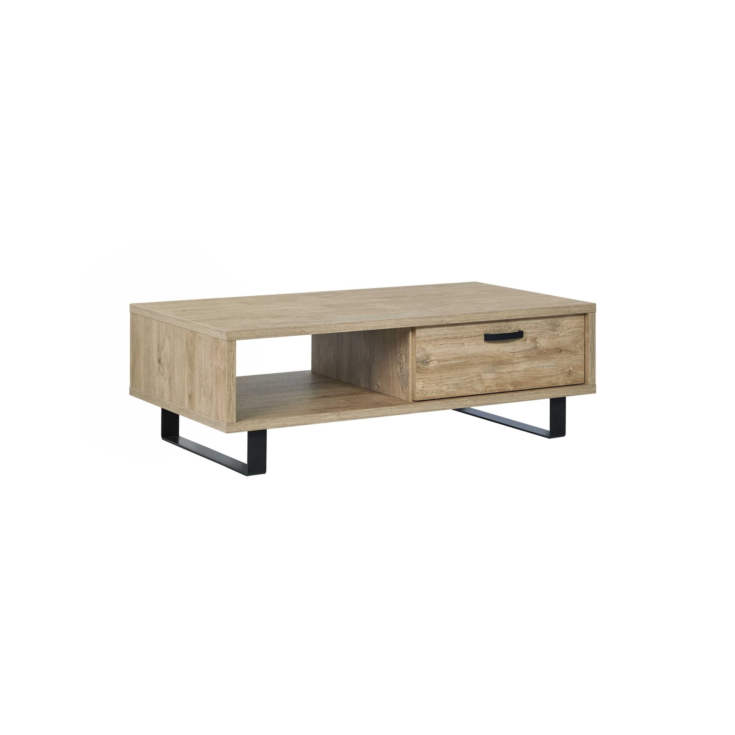 Deze moderne salontafel vindt gemakkelijk zijn plaats in elk interieur. De salontafel is voorzien van voldoende opbergruimte dankzij de grote lade. In het vak onder het blad plaats voor enkele tijdschriften en afstandsbedieningen. Gemakkelijk te monteren door middel van bijgeleverde montagehandleiding. Dit meubel is vervaardigd uit een stevige spaanplaat en afgewerkt met een sterke melamine. Bekijk ook de andere meubelen uit deze serie en richt je woonkamer in één keer helemaal in!