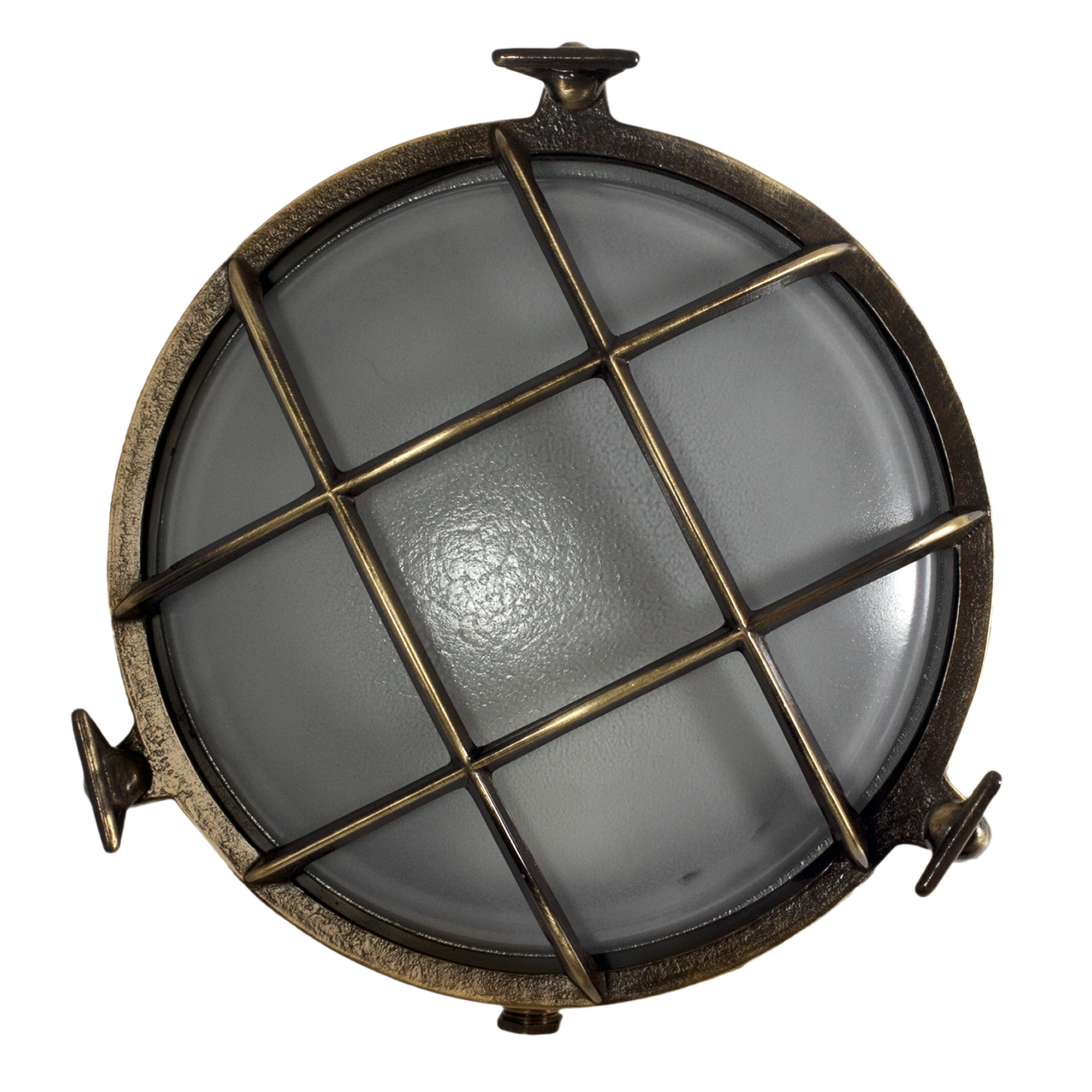 Een ronde scheepslamp met zeer dik robuust glas, een E27 fitting geschikt voor zowel een normale als een LED lamp. Deze scheepslamp is vervaardig uit messing en gekleurd in een bronzen kleur. Deze mooie lamp heeft een diameter van 23 cm.