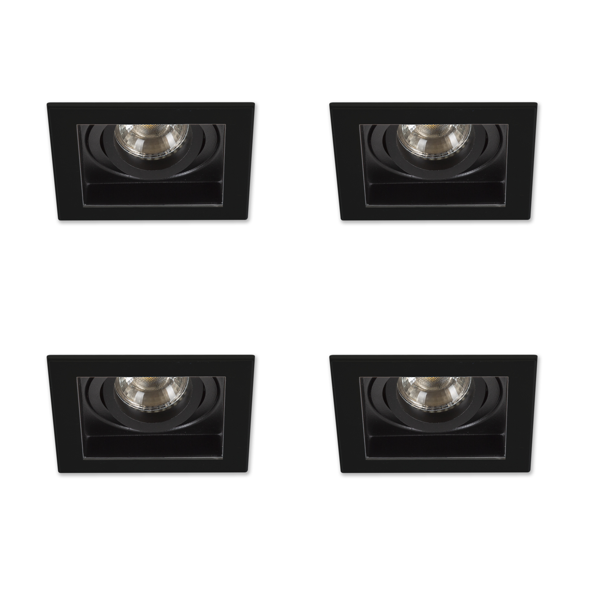 Boor afmetingen: 9,6cm breed/lang (vierkant)Buiten afmetingen spot: 10,6cm breed/langMinimale inbouwdiepte: 9,5cmDit betreft een set van 4 afzonderlijke inbouwspots.De AXL is een moderne inbouwspot die volledig thuishoort in een moderne omgeving! De stoere zwarte aluminium vierkante inbouwspot is draai- en kantelbaar, je kun dus je donkere hoekjes in huis eenvoudig verlichten. Door de verstelbare ring binnenin de spot kun je het licht alle gewenste kanten op laten schijnen. De spot heeft een buitenmaat van 10,6 x 10,6cm. De inbouwafmetingen zijn minimaal 7,5 cm hoog (diep) en 9,6cm breed/lang (vierkant). Vervangbare lichtbron! Het product wordt geleverd exclusief lichtbron, deze kunt u bezichtigen in de aanbevolen producten.De spot kan makkelijk geplaatst worden aan je plafond dankzij de klemveren aan de spot en met een GU10 lichtspot van maximum 50 Watt maak je deze AXL inbouwspot helemaal af. Een stijlvolle inbouwspot die zeker niet zal misstaan in jouw moderne of industriële interieur. Deze inbouwspot wordt voordeliger als u er meer besteld! De sets met 1 of 10 stuks kunt u bezichtigen in de aanbevolen producten.