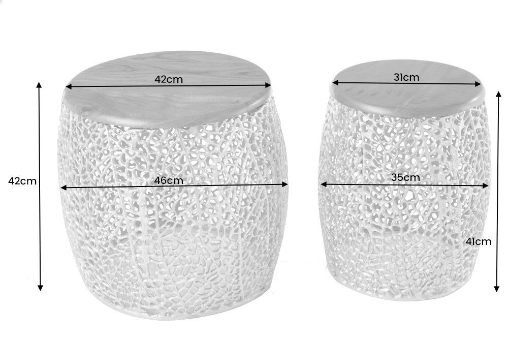 Set van 2 filigrane design salontafels ABSTRACT LEAF goud acaciahout handgemaakt metaal rond – 43225