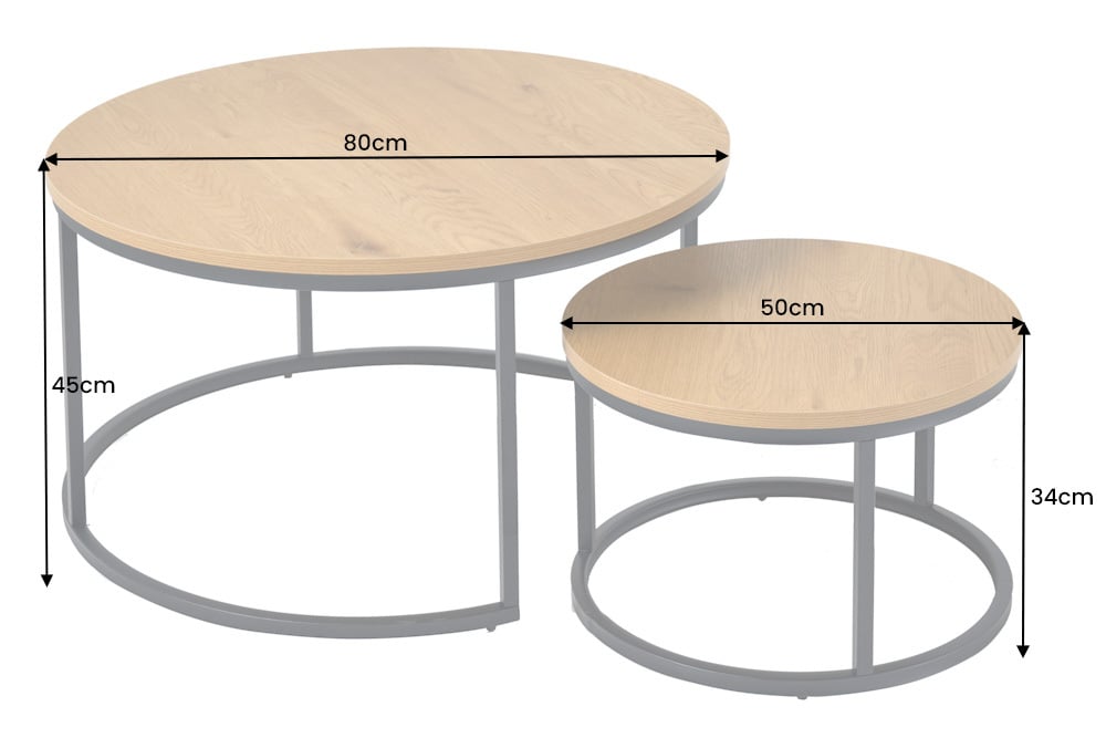 Set van 2 ronde salontafels ELEGANCE 80cm natuurlijk wild eiken design zwart metalen frame – 43642