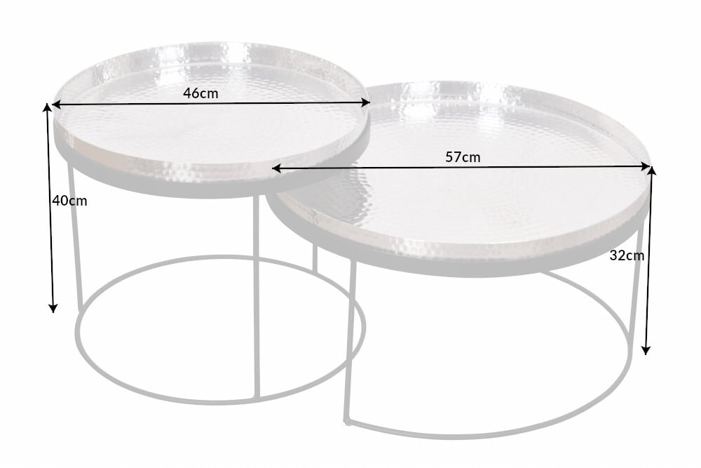 Deze salontafelset wordt in een mum van tijd jouw nieuwe favoriete meubelstuk in huis. De twee tafels maken indruk met een modern design. Twee ronde tafelbladen van hoogwaardige metaal-aluminiumlegering rusten op het zwarte metalen frame. De tafelbladen zijn met bijzondere aandacht voor detail vervaardigd.