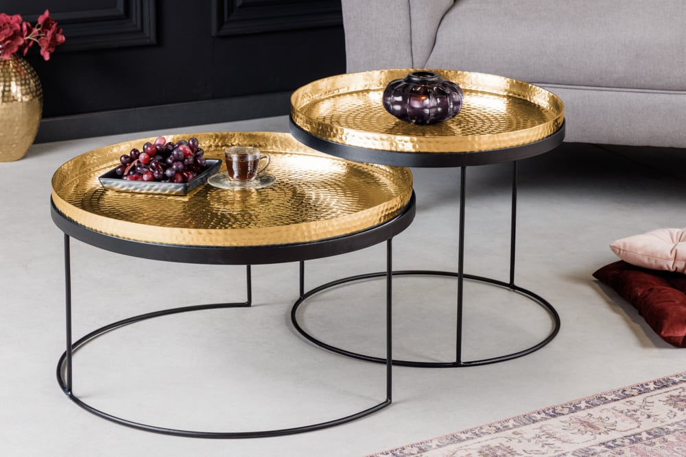 Set van 2 ronde salontafels ELEMENTS Ø60cm goud zwart metalen dienblad tafel bijzettafel handgemaakt – 42730