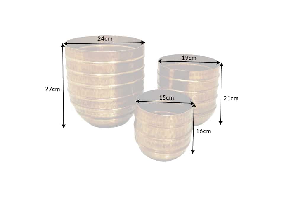 Set van 3 bloempotten ORIENT 25/20/15cm metaal goud gehamerd ontwerp – 41269