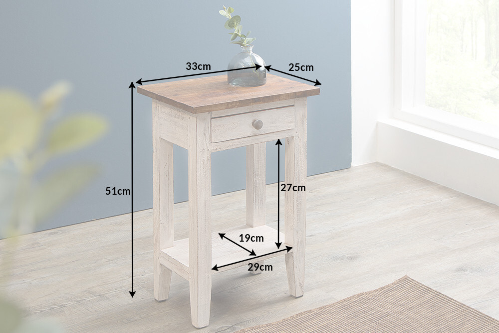 Shabby chic telefoontafel LA FLEUR 50cm wit mahonie bijzettafel landelijke stijl – 38560