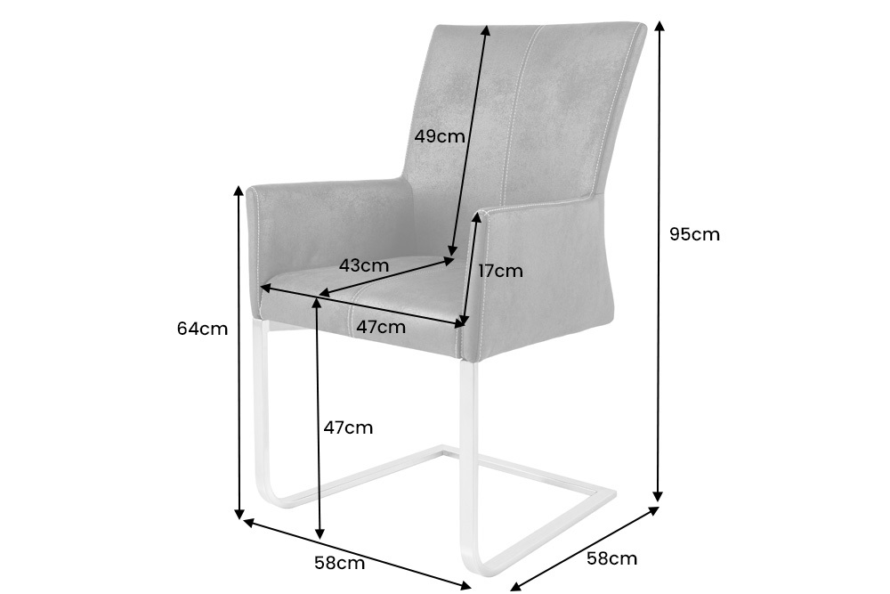 Sledestoel SAMSON vintage grijs met armleuning en RVS frame – 35788