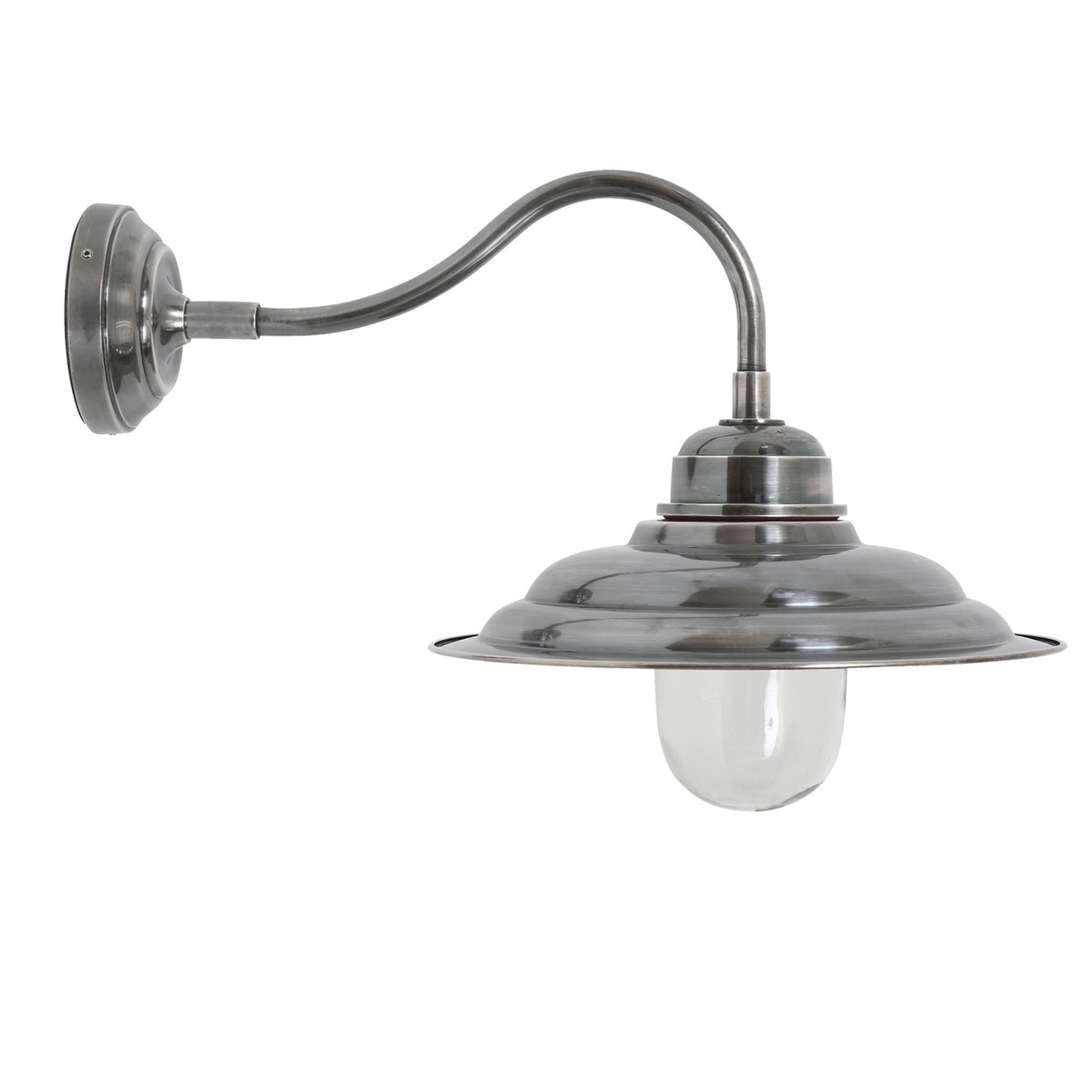 Deze Derby vintage stallamp uit de Nostalux Industrieel & Vintage lijn is handvervaardigd met als basis materiaal messing. De lamp heeft een verouderde zilveren look en kan zowel binnen als buiten worden aangesloten. De lamp is zowel binnen als buiten onverwoestbaar en je hoeft je geen zorgen te maken om roest door de hoge kwaliteit messing. Let op: bij dit armatuur komt het voor dat het basismateriaal na plaatsing kan gaan verkleuren. Dit is een natuurlijke patina van de zilverlaag die bijdraagt aan het authentieke uiterlijk van de lamp. Deze kleur wordt ook wel ''oud zilver'' genoemd en geeft de lamp karakter.
