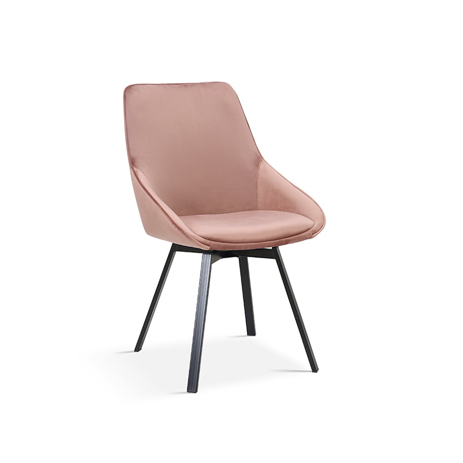 Door zijn mooie velvet stof in combinatie met zijn strakke metalen poten is deze moderne stoel een echte eyecather in je interieur. De stoel is verkrijgbaar in meerdere kleuren en daardoor ook leuk te combineren. Deze stoel heeft een goed zitcomfort en is netjes afgewerkt, hij heeft een zithoogte van 48 cm en een zitdiepte van 58 cm. Deze stoel is 360 graden draaibaar.