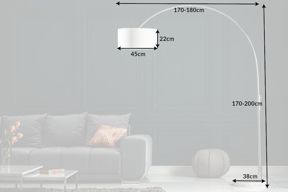You're viewing: Uitschuifbare booglamp LOUNGE DEAL 170-200cm vloerlamp met witte linnen kap – 35596 184.83