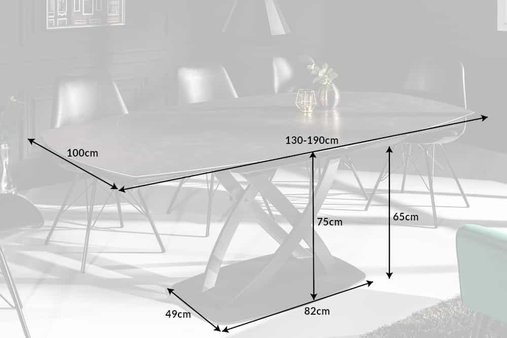Met deze eettafel haalt u een echt designwonder in uw huis. Het tafelblad is gemaakt van donker keramiek, dat is aangebracht op een hoogwaardige veiligheidsglasplaat. Het bijzondere hoogtepunt van het bord: Door middel van een draaimechanisme kan hij uit- en uitgeschoven worden, zodat je de tafel tot wel 60 cm kunt verlengen.