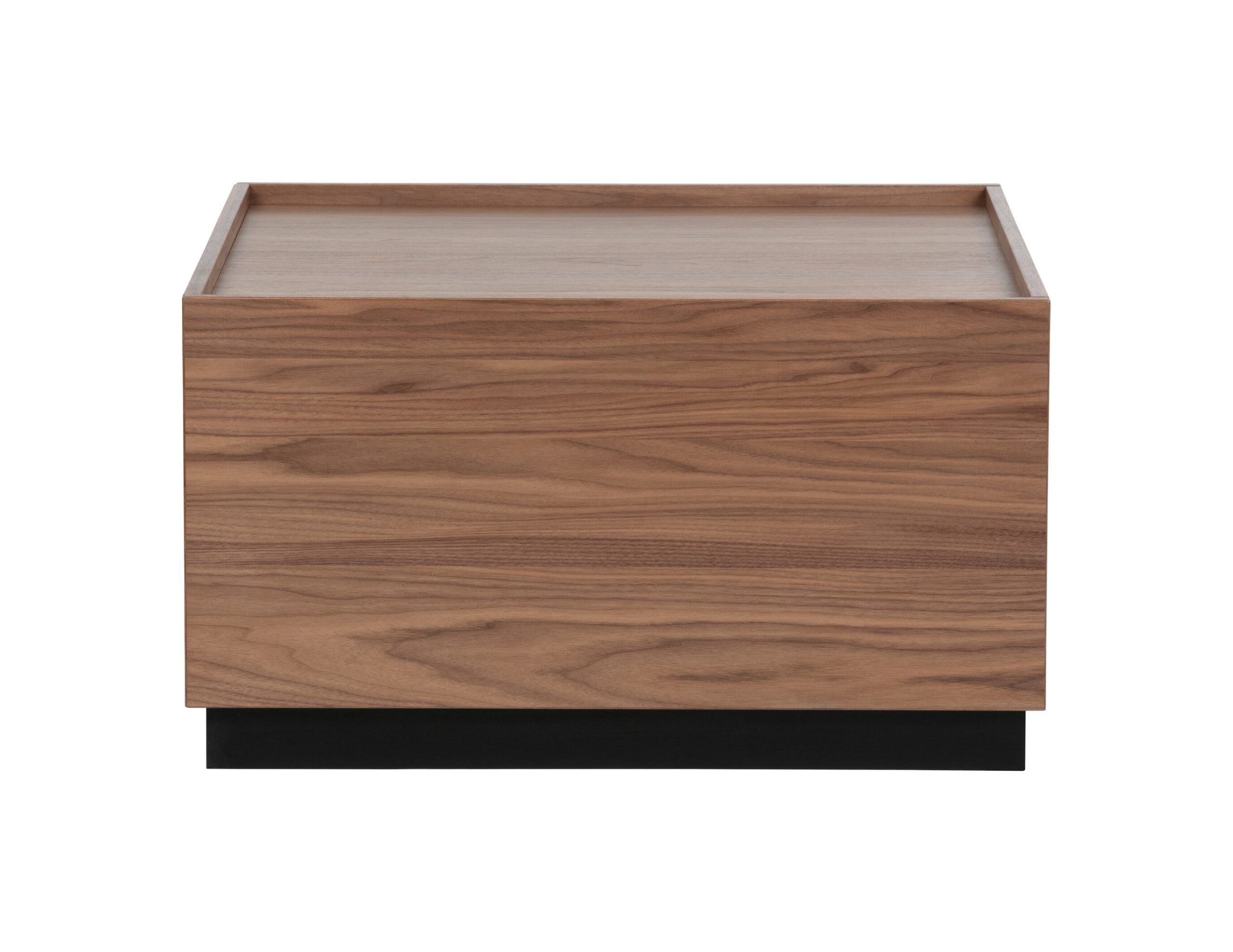 Deze Block bijzettafel komt uit de collectie van het Nederlandse merk vtwonen. Block bijzettafel is gemaakt van FSC-gecertificeerd walnootfineer. De zwarte plint is vervaardigd uit geschuurd grenenhout. De hoogte van de voet is 6 cm, de hoogte van de top bedraagt 38 cm. Deze tafel weegt 28 kg.