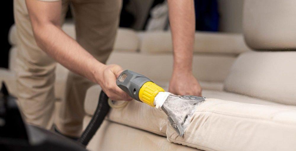 Stoffen bank schoonmaken met een stoomreiniger